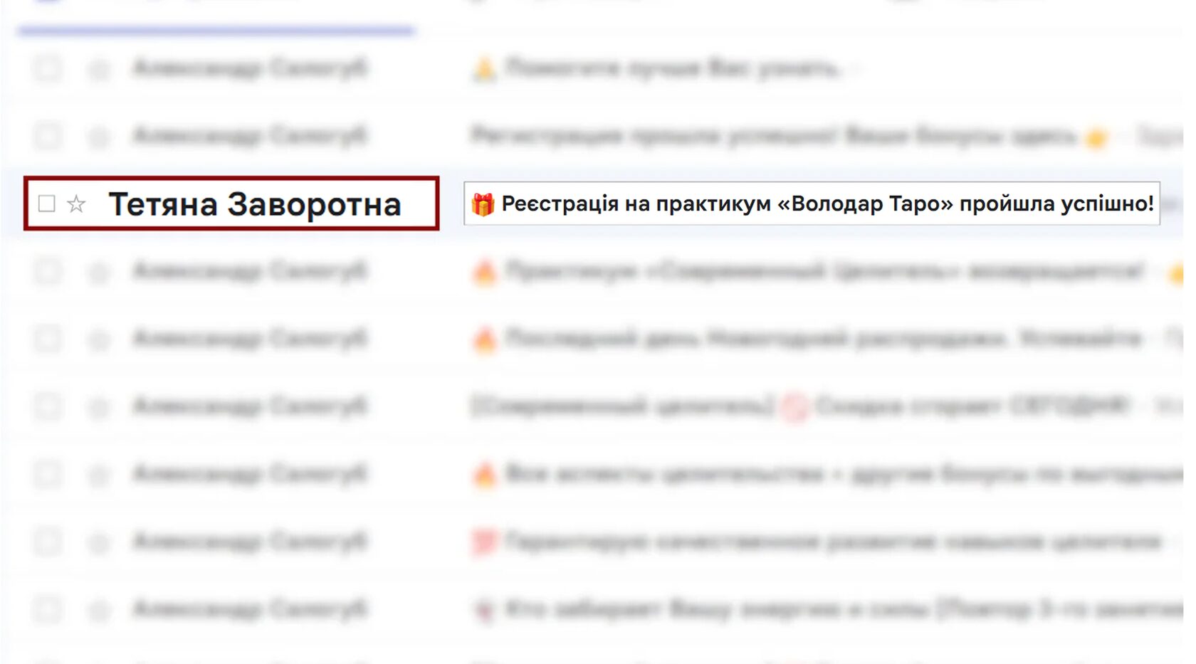 із заголовком "🎁 Реєстрація на практикум «Володар Таро» пройшла успішно!" і читайте його